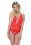 Delicato body di orsacchiotto scollato con motivo a cuore e rete trasparente. Schienale basso con spalline trasparenti incrociate.