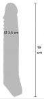 Con la guaina puoi ottenere istantaneamente un pene più lungo e più spesso. Il materiale è morbido e flessibile. L'anello mantiene l'estensione del pene ben in posizione. Per aiutarti usa sempre un lubrificante.