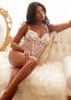 Body trasparente rifinito con pizzo ciglia e spalline regolabili.