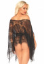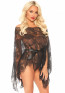 Mini caftano in pizzo a 3 pezzi con maniche lunghe drappeggiate, nastro in raso e perizoma abbinato. Taglia Unica