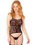Rivela il tuo desiderio più intimo in questo bodystocking con reggicalze. Enfatizza perfettamente la forma del corpo e ha un cavallo completamente aperto. Questo bodystocking è caratterizzato da un classico design a riccioli intrecciati e spalline regolabili. Perizoma non incluso.