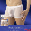Box trasparente bianco con un supporto ad anello per una funzione di rigonfiamento del pene e dei testicoli.