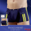 Box in microfibra blu con strisce catarifrangenti gialle visibili anche all buio. La borsa frontale può essere sbottonata completamante