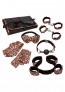 Caratteristiche e funzioni: 2 Fascette morbide e sensuali; Doppia maschera per gli occhi imbottita; 2 set di polsini completamente regolabili; Barra di sollevamento pieghevole con polsini regolabili; Bavaglio a sfera traspirante con chiusura a fibbia; Arrotolabile custodia da viaggio